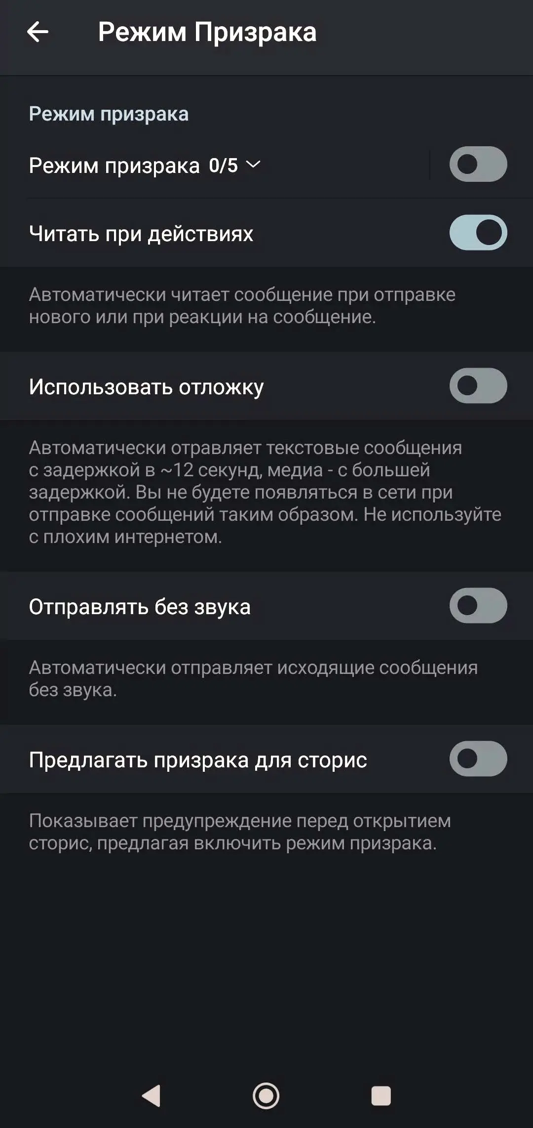 Активируйте невидимость в сети — ваши контакты не будут видеть, когда вы онлайн, читаете сообщения или набираете текст. Даже если вы ответите на сообщение, статус останется неактивным для других пользователей.